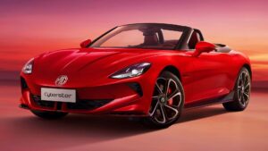 The MG Cyberster is powered by a high-performance electric motor producing 510 horsepower and 725 Nm of torque. It comes with a 77 kWh battery that provides a claimed driving range of 580 km, making it not only fast but also practical for long journeys.