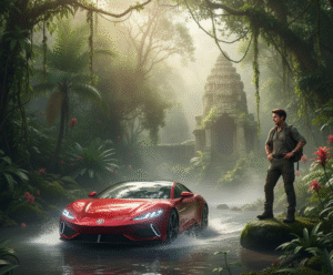 The car’s wheels are large alloy designs that complement its sporty look, and the rear features futuristic LED tail lights that give the car a unique presence on the road. Overall, the design balances elegance, aggression, and futuristic appeal.